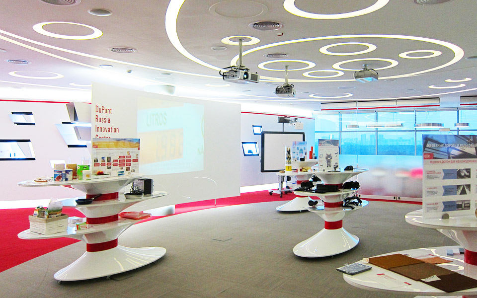 Инновационный центр DuPont Russia Видеопроцессор VCP используется для управления 3-мя проекторами в зале проведения презентаций и других мероприятий.