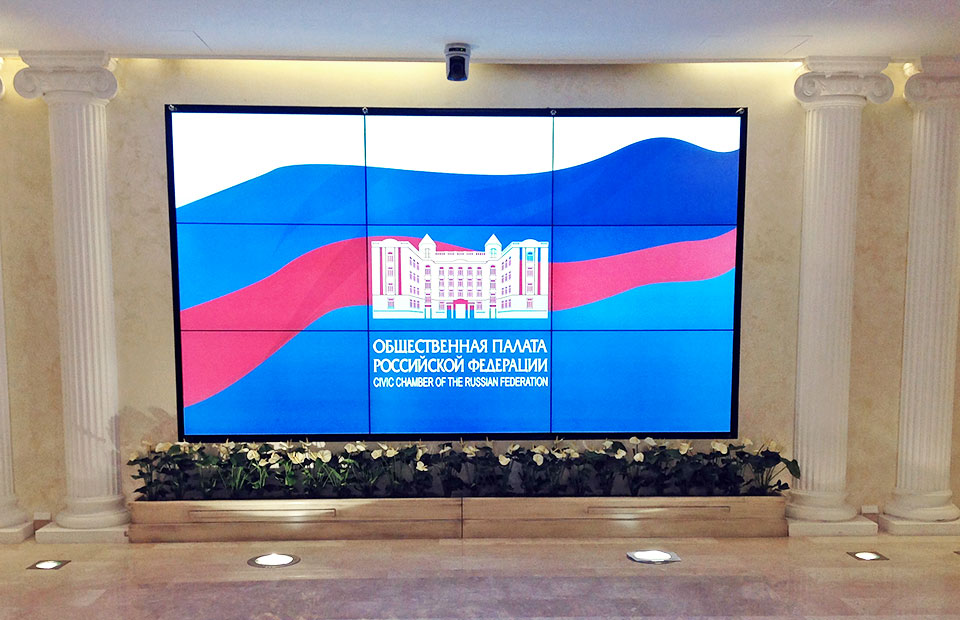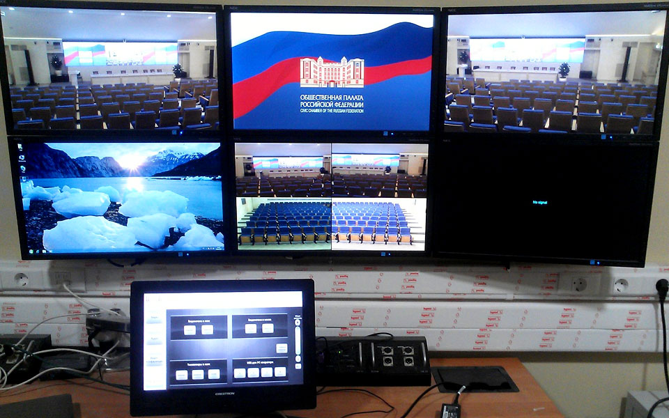 Для каждого зала были выполнены индивидуальные проекты систем визуализации на основе видеостен из LCD панелей в конфигурациях 2х2, 3х3, 4х4, 3х6, 9х3. Для формирования изображения на видеостенах были применены видеопроцессоры Media Display серии VCP-3000 в разных вариантах комплектации – от 4-х до 30 выходов и с различным набором видео, DVI и SDI входов.